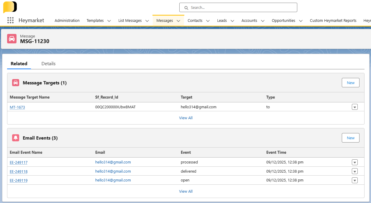 Please share any queries or issues here: salesforce@heymarket.com