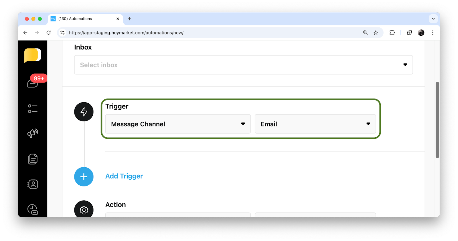Email automations work like other Heymarket Automations but include actions designed specifically for email. They help you respond faster, route messages to the right team member, and send timely outreach without manual work.