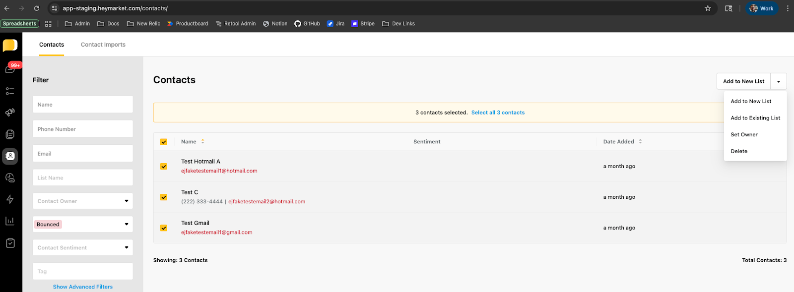 - Filter the contacts by the status ‘Bounced’.