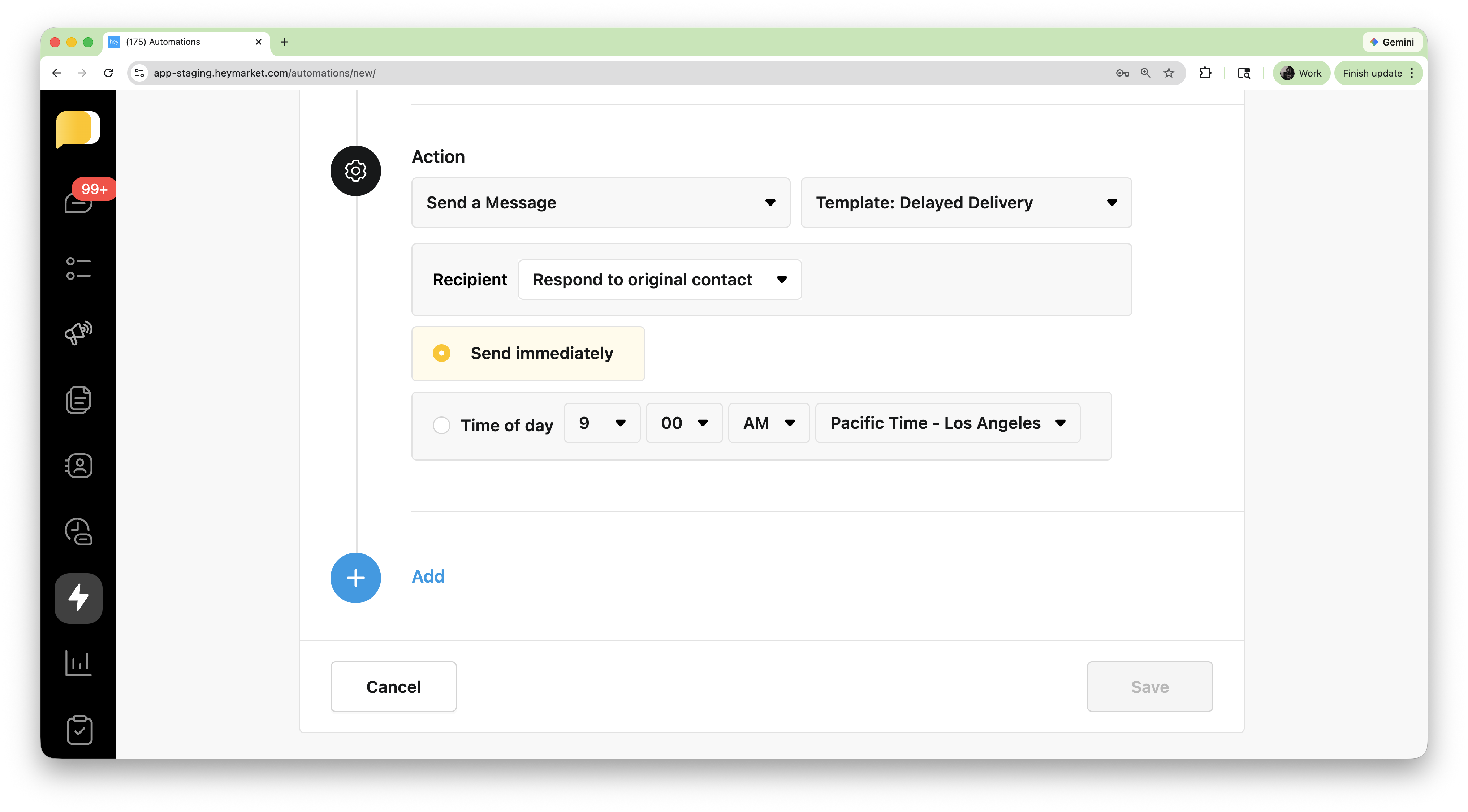 Add automation actions such as Send Message.