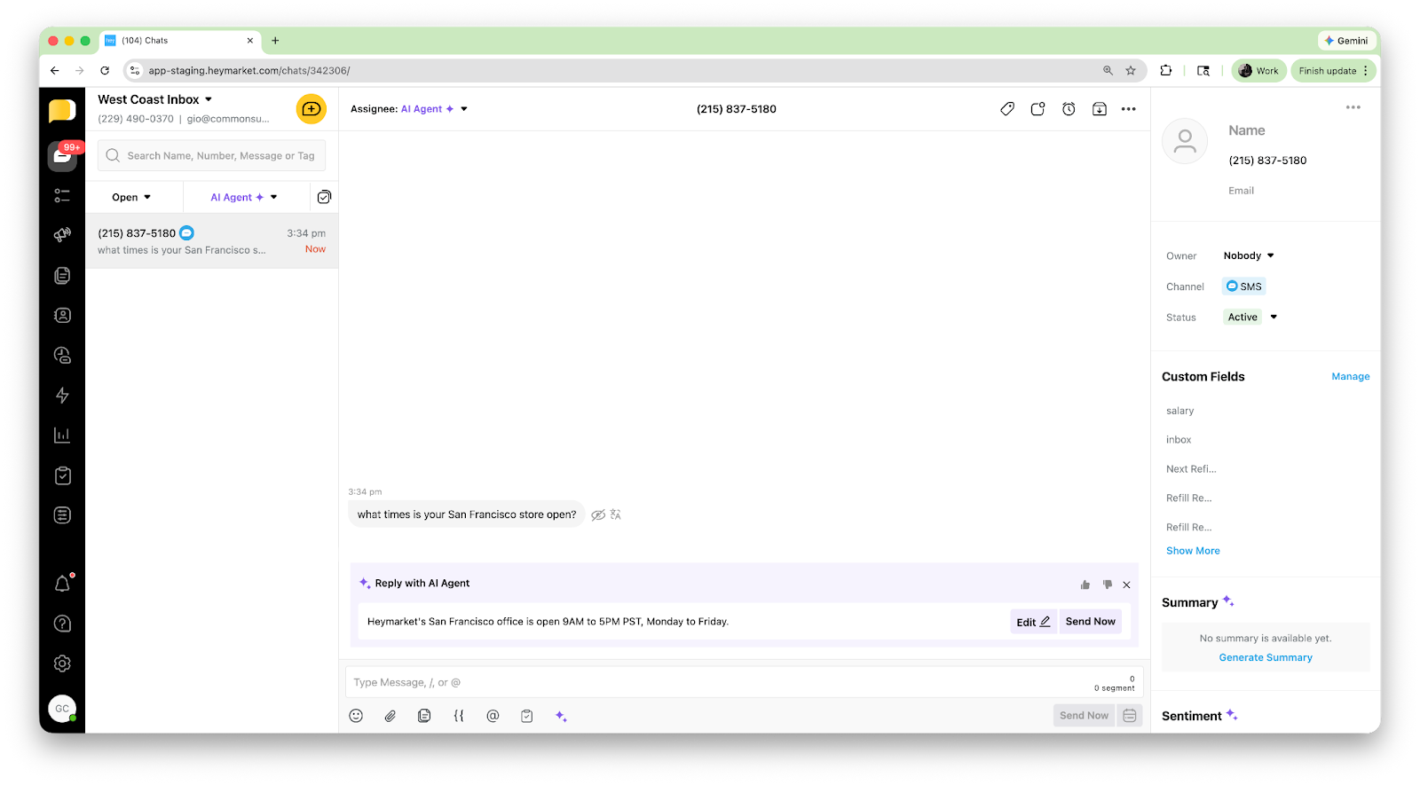 If you have questions about setting up Hey AI, reach out to your Heymarket account manager or visit the Heymarket Help Center.
